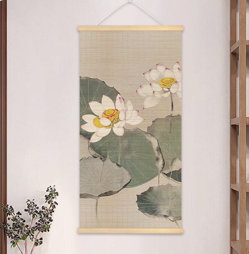 This bamboo hanging scroll titled “White Lotus” captures the Zen essence of Eastern aesthetics through its refined and transcendent ambiance.